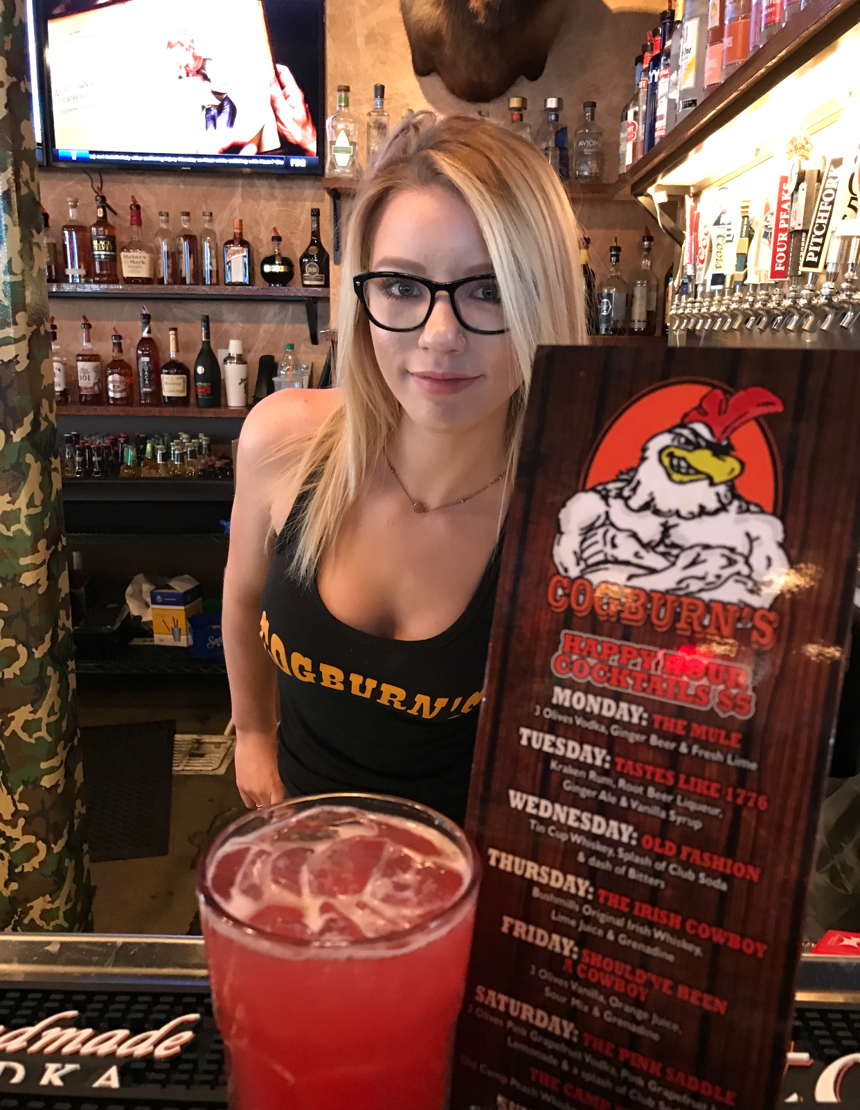 Monday thru Friday from 2pm-7pm is Cogburn's Happy Hour with $1 off drinks and appetizers!